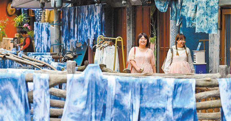3月17日,游客在肇兴侗寨休闲游玩。寨内已培育文创企业38家,手工艺企业60余家,带动3000余名村民在家门口创业就业。贾 智摄(中经视觉)