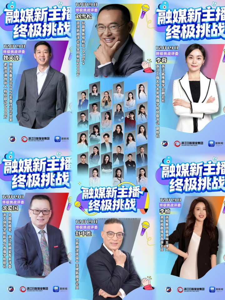 由浙江省新闻工作者协会与浙江日报报业集团共同主办的2025浙江省“融媒新主播”活动,将于12月19日迎来终极挑战。经过初评筛选与创造营实战淬炼,聚星赛道18位选手、观潮赛道7位选手脱颖而出,共25人晋级终极挑战。值得关注的是,本次活动特邀六位来自主流媒体、新媒体平台、学术界及社会公信力领域的重量级专家组成评审团。