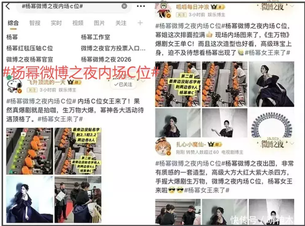看懂了吗?虽然字数很多,但意思还是那个意思,终究是打工人背下所有,最大的信息点就是“微博之夜否认杨幂抢位”,同时又坐实了杨幂不是C位。