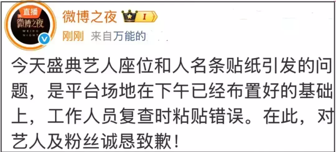 微博之夜活动开始,工作人员发现错误,第一时间予以纠正。