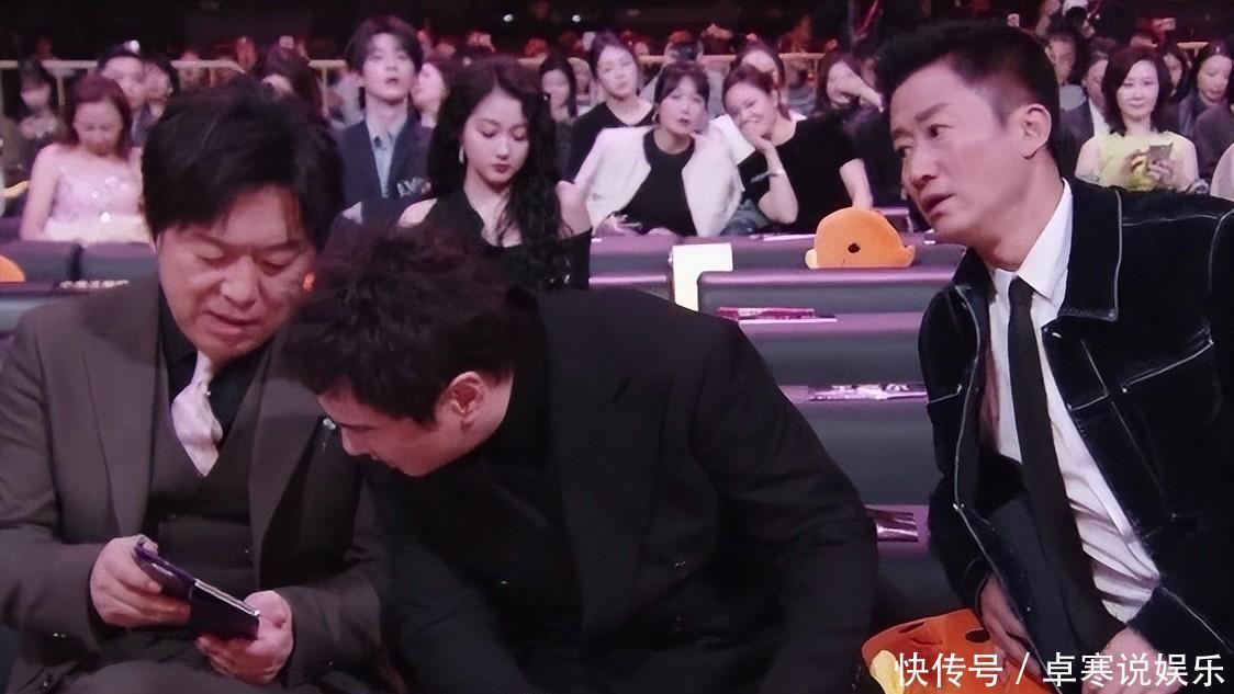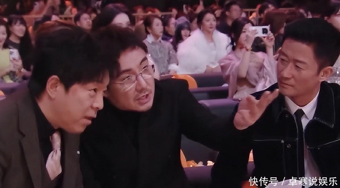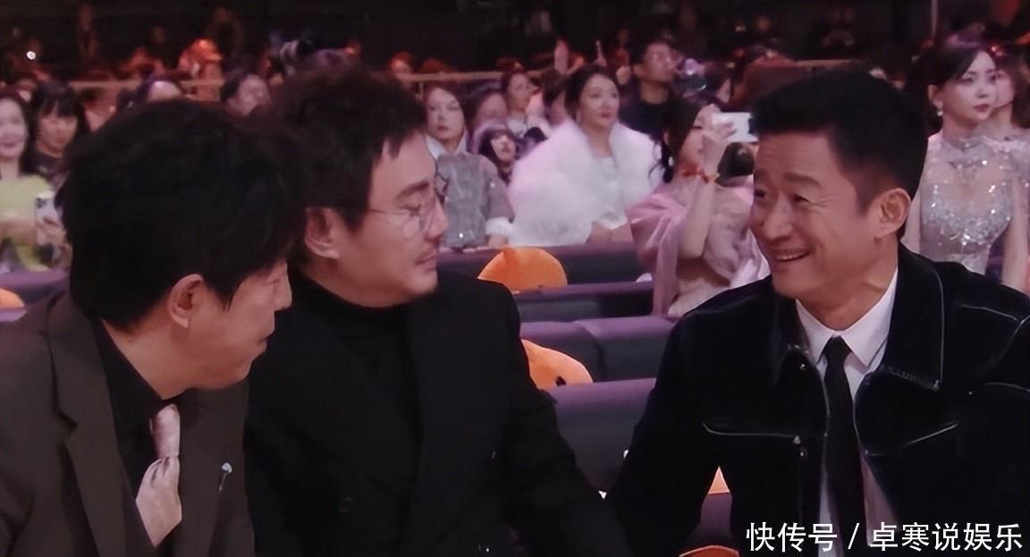 吴京的“老年感”主要体现在“硬核保暖”上,红毯那天,天气偏冷,他穿着西装亮相,整场都紧紧裹着外套,走红毯时还缩着脖子、把手插在口袋里,与其他艺人的光鲜亮丽形成了鲜明的对比;而在台下和沈腾、黄渤交头接耳的时候,三人凑在一块低声说话的样子,被网友调侃成“东北老年看报组”,画面满满烟火气。